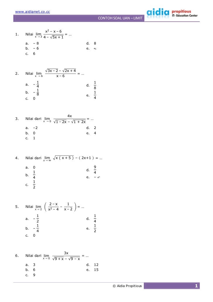 12 Contoh Soal Limit Fungsi Matematika | Pengetahuan Olandsky